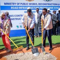 Wasiirka hawlaha guud iyo madaxweynaha Galmudug oo dhagax dhigay dhismaha waddo laami ah oo 60-km