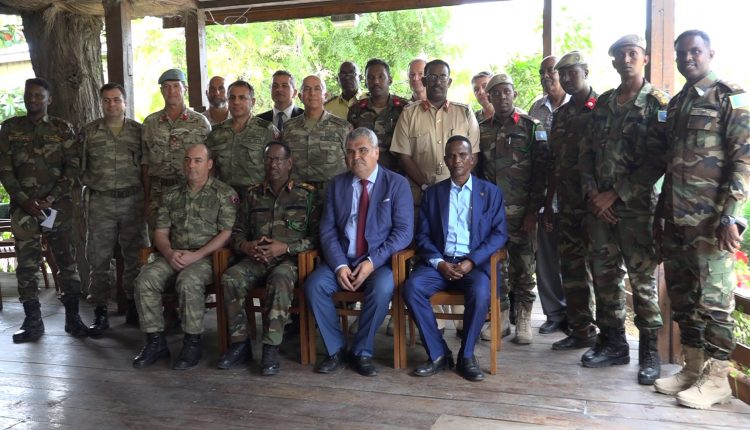 Ku-simaha Taliyaha Ciidanka Xoogga dalka ahna Taliye ku-xiggeenka XDS Sarreeye Gaas Cabdi Xasan Maxamed, Safiirka Ku-xiggeenka Dawladda Turkiga ee Soomaaliya iyo Saraakiil kale ayaa maanta ka qeyb galay Munasabadaan oo lagu sagootinayey u Qeybsanaha Ciidanka Milaratiga Turkiga ee Soomaaliya.