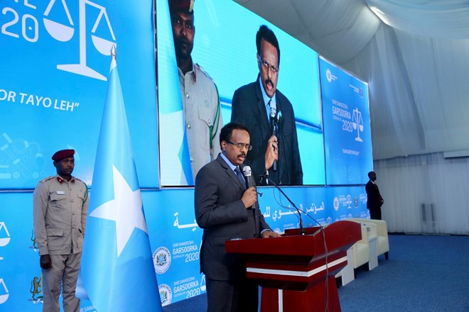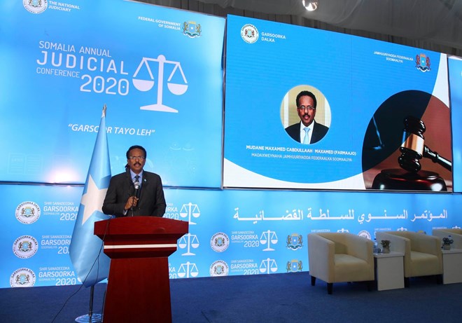 Madaxweynaha Jamhuuriyadda Federaalka Soomaaliya Maxamed Cabdullaahi Farmaajo oo soo xiray Shirka Sanadlaha ah ee Garsoorka dalka ayaa si faahfaahsan u soo bandhigay xiriirka dhow ee ka dhaxeeya cadaaladda, horumarka, amniga iyo midnimada. Madaxweyn