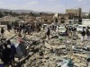 People gather at the site of Saudi airstrikes in a region in Yemen’s Dhamar province, October 8, 2015. ©AP