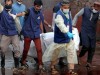 Volunteers, some wearing only sandals on their feet, continued to bring bodies from the smouldering wreckage on Sunday morning.