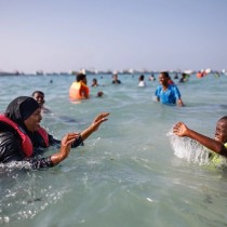 Mulki's just come out of the water. She's still wearing a bathing cap that covers her hair and a florescent orange life preserver. The university student says Liido Beach is one of the few public spaces in Mogadishu that's relatively safe and it's free to everyone.