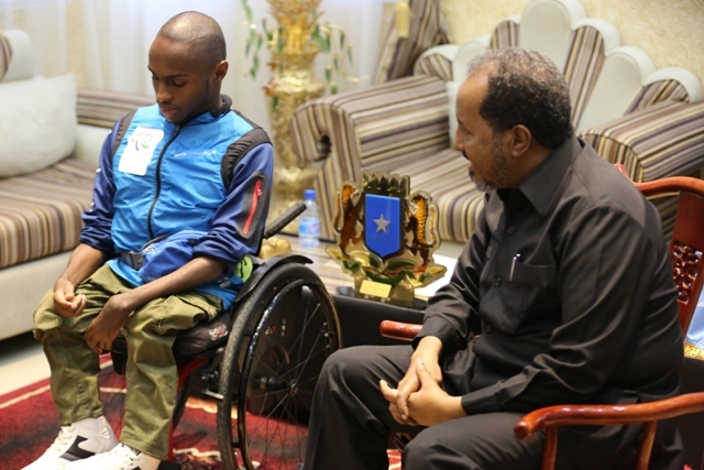 Madaxweynaha Jamhuuriyadda Federaalka Soomaaliya, mudane Xasan Sheekh Maxamuud ayaa kulan dhiirigelin ah u sameeyey Farxaan Hadaafoow oo ah ciyaaryahankii Soomaaliya uga qeyb-galay tartanka Olombikada adduunka ee ciyaaraha naafada.