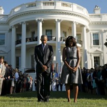 Madaxweyne Obama iyo Michele oo daqiiqad aamusnaan ah gudanaya. Sep 11, 2015.